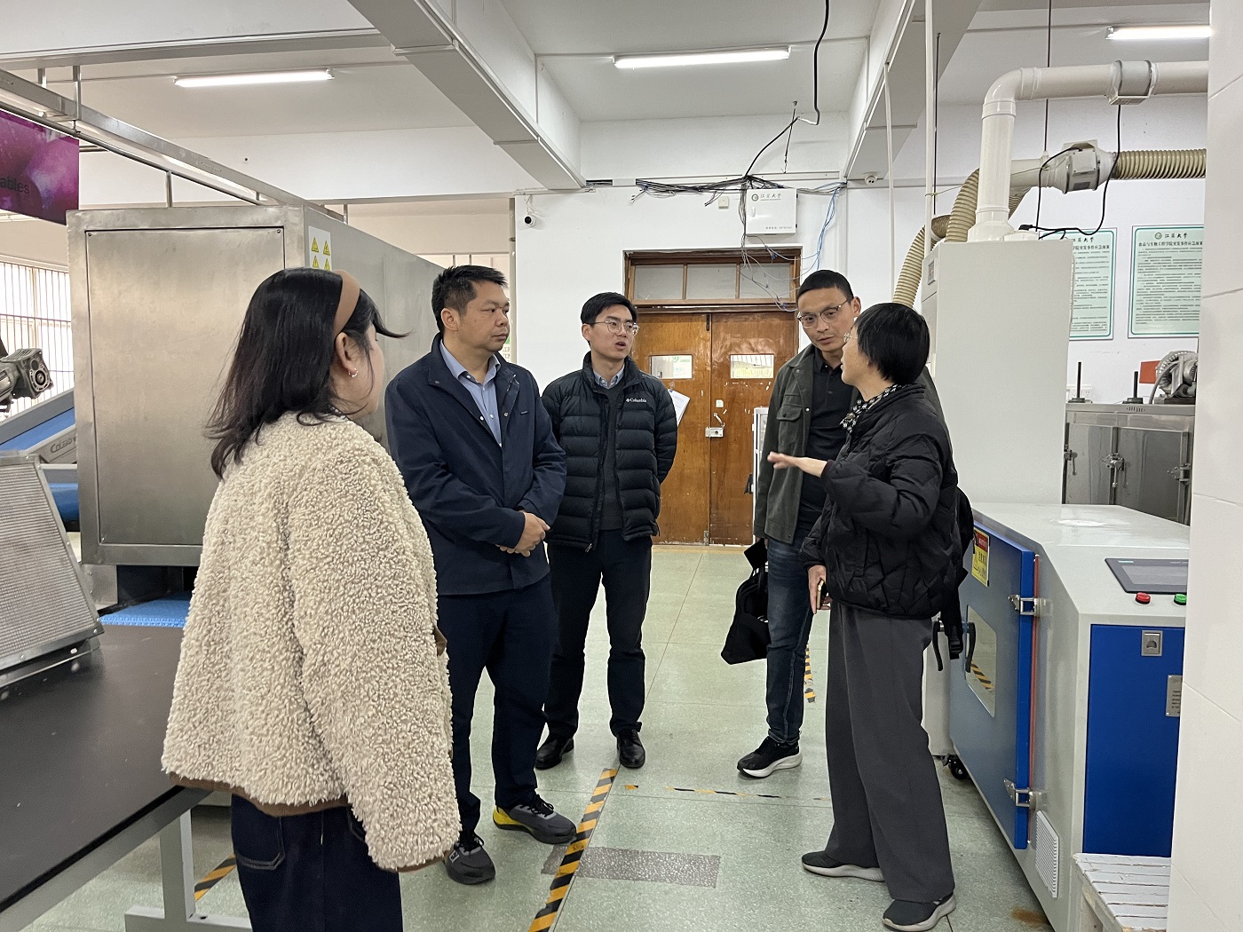 座谈会上,石吉勇对潘健一行到访表示热烈欢迎,系统介绍了该院在学科建设、人才培养和科研创新方面的发展历程与特色成果。潘健从办学定位、平台建设和服务地方产业三个维度,重点阐述了我院产学研用深度融合的办学特色。吴永祥就食品专业建设现状、人才培养模式及产学研协同发展成效作专题汇报。针对IFT专业认证筹备工作,我院食品专业教师就认证标准解读、支撑材料组织、课程体系优化等关键环节提出具体问题。双方围绕上述问题展开深度研讨,江苏大学专家团队结合其食品科学与工程专业通过IFT认证的实践经验,给予针对性指导建议。会后,潘健一行还参观了江苏大学食品与生物工程学院相关实训平台,并就食品感官实验室建设进行了实地调研。