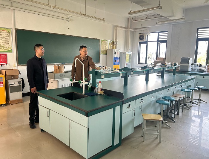 此次检查涵盖危化品存储、设备使用规范、用电安全管理、消防设施状态等12项核心指标。检查小组采取“台账核查+现场问询+设备抽检”的方式,对实验室管理台账、电气安全、危化品管理等方面展开细致排查。在检查过程中,万志兵副书记指出,要搭建人防与技防相结合的双重保障体系,特别是假期仍有实验任务的实验室,务必落实“三查三报”制度。万顺利副院长则着重强调,必须严格落实定人、定机、定岗、定责、定处置预案的“五定”管理制度。期间,检查小组随机走访了三个正在开展实验的实验室,同步推进两项重点工作:一方面,在现场开展标准化操作微培训,即时强化师生的实验规范意识;另一方面,核验试剂柜双人双锁制度的执行情况,保障实验室试剂管理规范有序。