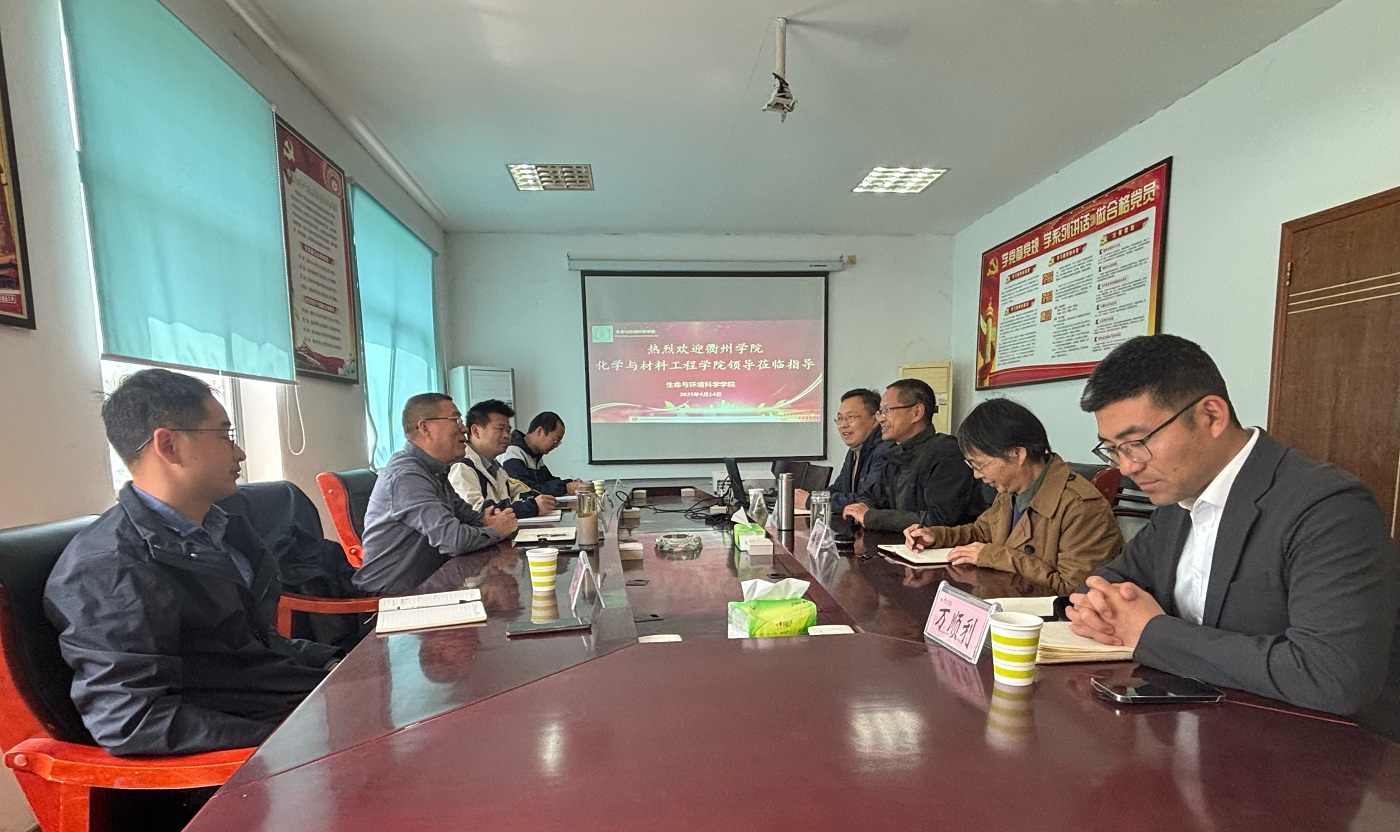 2025 年 4 月 14 日上午,衢州学院化学与材料工程学院党委书记郑启富一行到访6776永利集团yl6776永利集团,双方就硕士招生、学生就业、联合培养等事宜展开深入交流,旨在进一步加强校际合作,促进资源共享与优势互补。我院党委书记吕顺清、院长潘健、党委副书记、纪委书记万志兵、副院长万顺利,辅导员王一帆等出席会议。