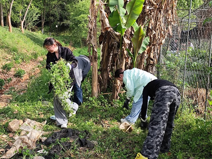 环境科学专业结合专业特点,重点开展了校园水西湿地维护劳动实践。劳动过程中,由大组长牵头提出各组湿地维护的初步方案,细化各小组劳动任务,对水西湿地不同单元进行分批次现场维护管理。通过湿地维护劳动实践,同学们不仅学会了人工湿地的运行管理及日常维护方法,而且把所学知识真正地运用到生活中来,打造了宜人的生活环境,实现了劳动实践和专业教育的完美结合。