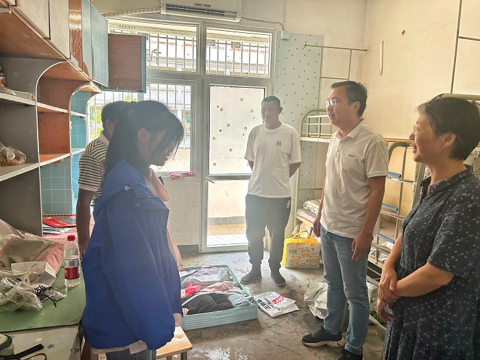 学院领导班子成员深入各迎新点,亲切慰问一线志愿者,详细了解迎新工作进展与服务保障情况,叮嘱志愿者们注意自身安全,以更饱满的热情做好服务工作。随后,学院领导走进新生宿舍,与新生及家长面对面交流,关切询问新生的住宿环境适应情况、饮食需求等,耐心解答家长关于孩子学业规划、就业发展等方面的疑问,同时鼓励新生尽快适应大学学习生活,积极参与校园活动,在学院这个“大家庭”中成长成才。