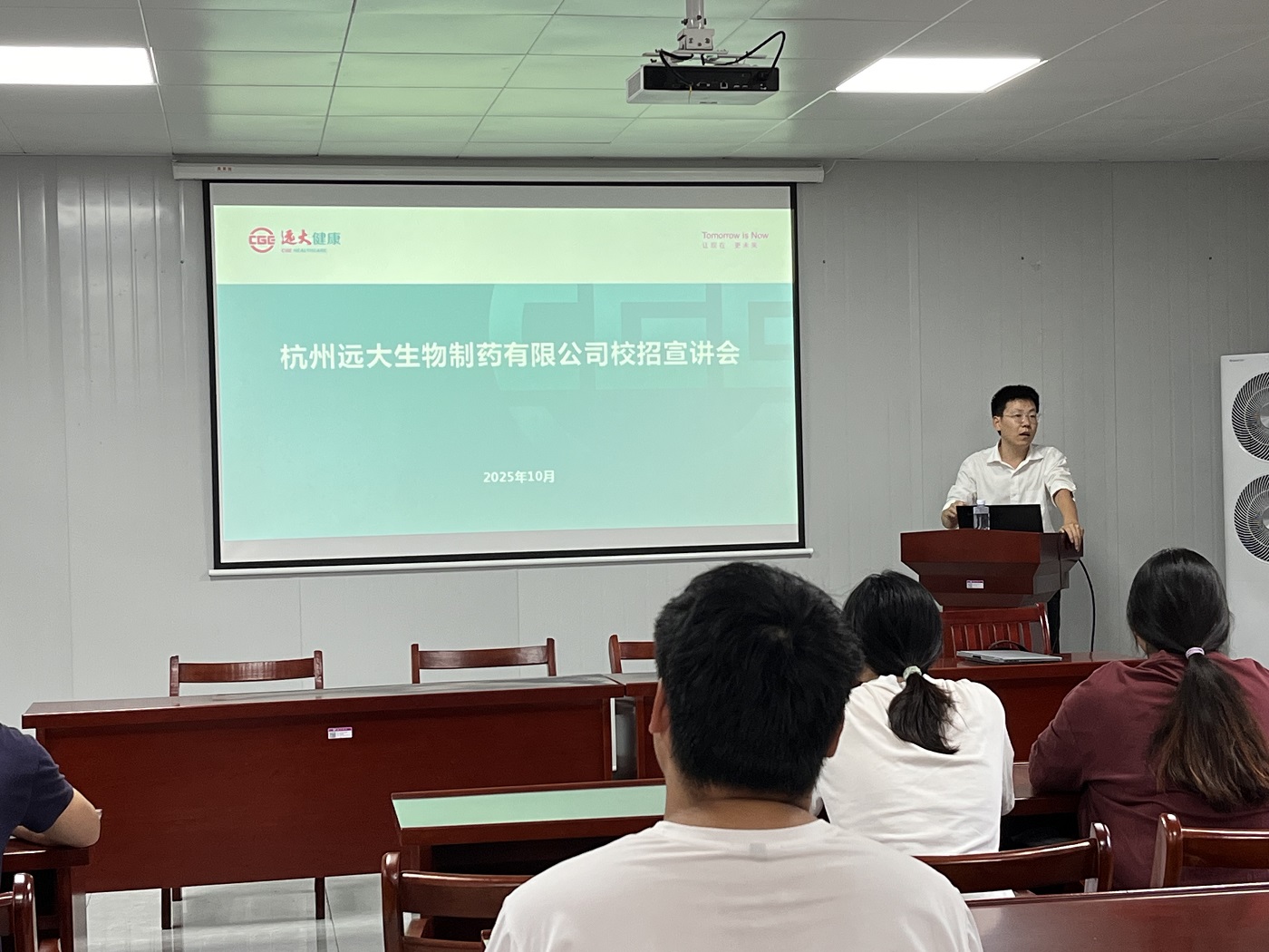 10月15日,杭州远大生物制药有限公司走进yl6776永利集团开展专场宣讲会,学院实习实训部主任陈向阳主持会议,22级生物技术、生物科学与食品科学专业学生参会。