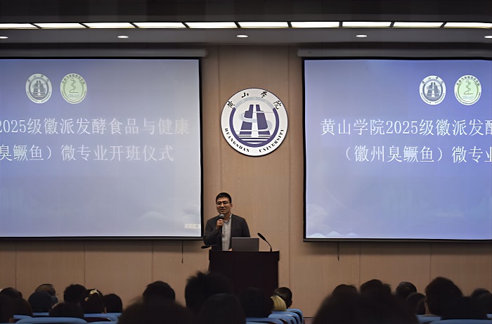 开班仪式上,微专业负责人吴永祥介绍了专业建设背景、培养目标与课程特色。该微专业依托yl6776永利集团学科优势与黄山市特色发酵食品产业资源,围绕“健康中国”战略和地方产业发展需求,构建了以实践创新能力培养为核心的课程体系,涵盖发酵食品学、食品营养与健康等5门课程,实践学时占比超60%,并聘请政府部门及行业企业专家担任校外导师,推动产教深度融合。