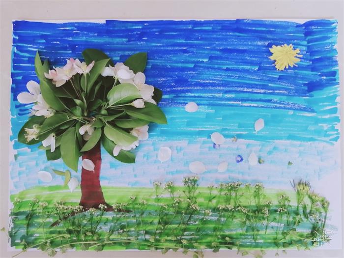 活动过程中,同学们在家寻找树叶,发挥奇思妙想,用树叶拼接、绘制出许多美丽、充满创意的作品,在实践中寻找春天,感受春天。同学们的作品不仅表现出春天的美好,同时也表达了对抗疫一线的医护人员们的深深敬佩之情。活动后期,由班委筛选出优秀的作品展示在班级QQ平台上。