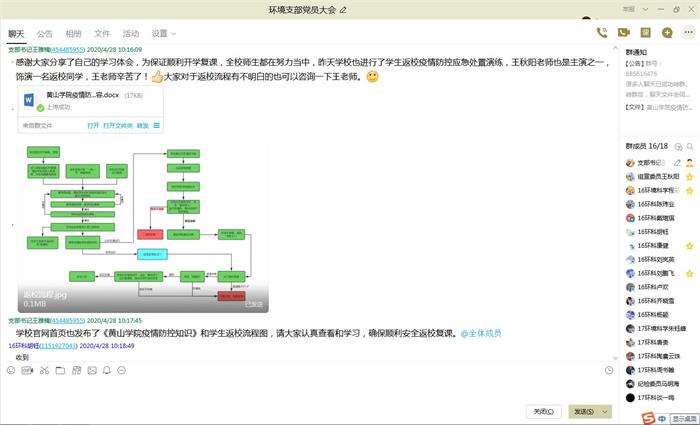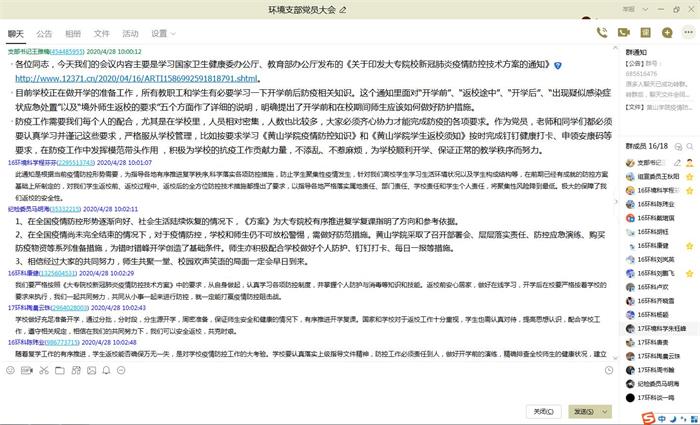 4月28日上午,环境党支部通过支部党员QQ群网络会议的形式开展主题党日活动,支部全体党员参加了网络会议。会议由支部书记王雅楠主持。