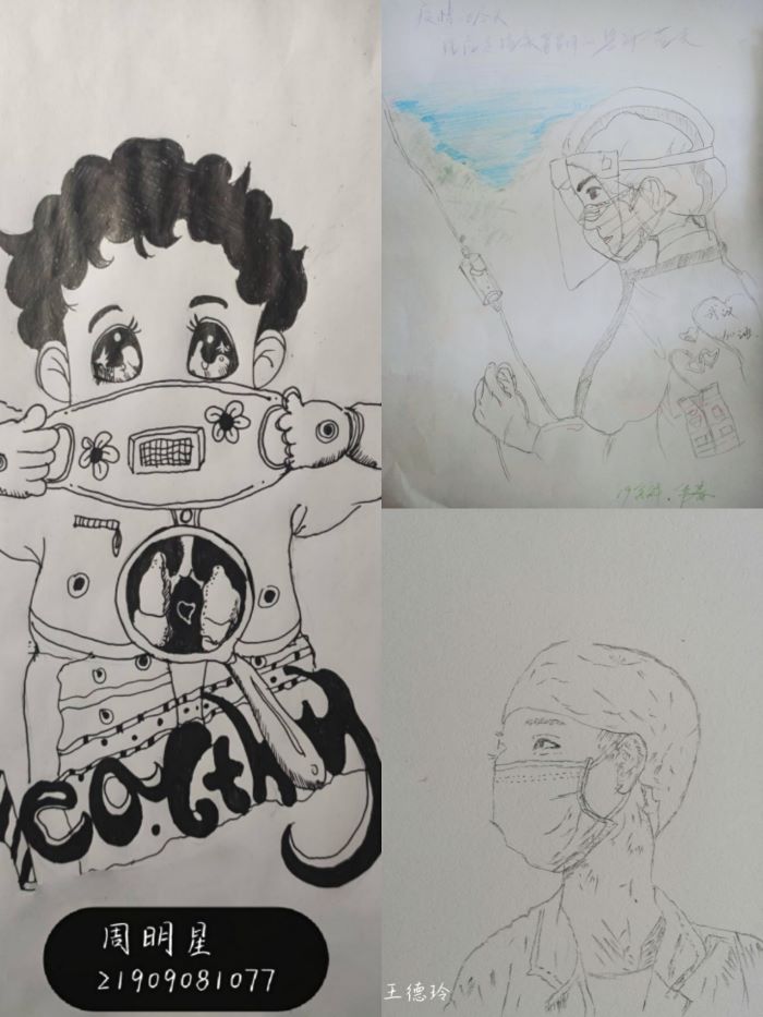 本次活动要求同学们以绘画的形式描绘出心目中“最美口罩”或“最美逆行”的人物形象。活动过程中,同学们按时提交自己的绘画作品,并在活动群中积极交流,发表感想。活动后期,由学院评选优秀作品。