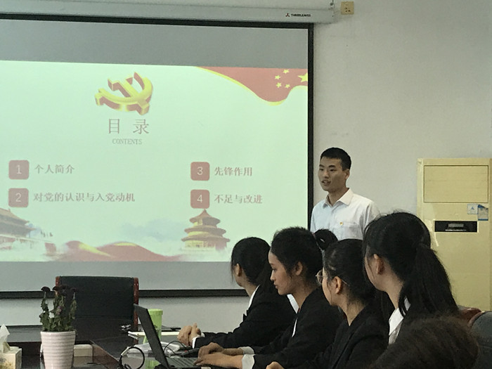 此次会议主要是讨论李浩东、申振伟等7名发展对象入党和预备党员谈一鸣同志转正的问题。首先会议讨论李浩东等7名发展对象的入党事宜,先由发展对象介绍本人近一年的综合表现、宣读入党志愿书,之后再由各党员无记名投票表决。之后会议讨论预备党员谈一鸣同志的转正事宜,预备党员向与会人员介绍自己在预备期内的表现,其后再由各党员投票表决。最后由支部书记王秋阳老师宣布了支部决议,并对党组织新成员的加入表示了热烈的祝贺。