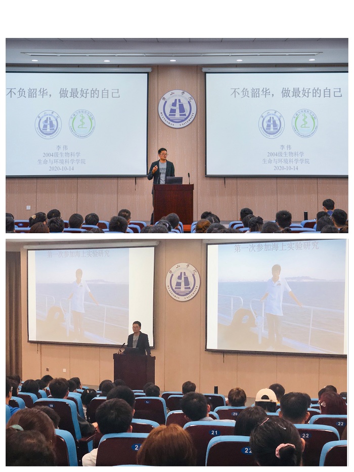 让同学们尽早并合理做好大学发展规划,以保障和提高学生的培养质量,是做好专业建设的重要环节。2020年10月14号晚19:00在文端楼一楼报告厅,生物技术专业邀请了生物技术省级教学团队成员李伟和吴永祥两位博士,以学长的身份结合自身成长和发展的经历,给同学们做了“学长的引领 未来的你”大学发展规划指导讲座。