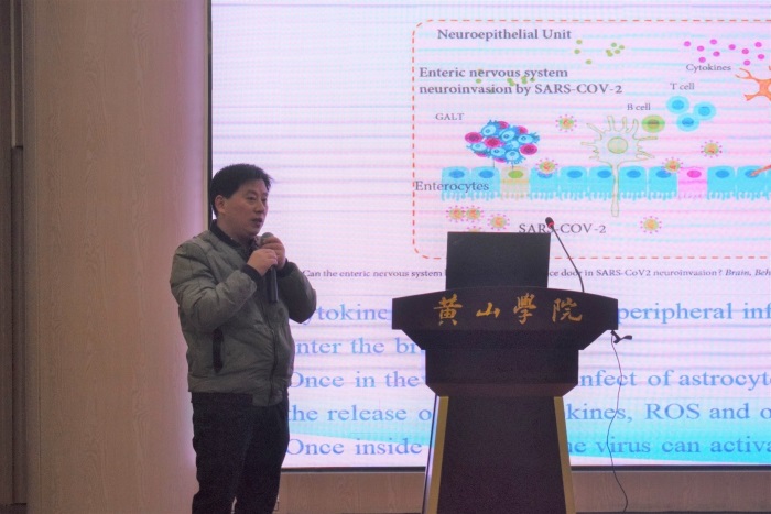 11月25日下午,行知讲坛第106讲在率水校区文端楼二楼报告厅举行。yl6776永利集团生物技术专业柏晓辉博士作题为《与新型冠状病毒SARS-CoV-2的博弈》的报告。报告会由科研处副处长汪洪峰主持,校党委书记汪枫、yl6776永利集团院长佘新松、科研处副处长亓昭鹏及yl6776永利集团300余名师生参加报告会。