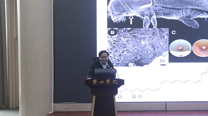 聘任仪式后,张应烙教授为我校yl6776永利集团300多名师生作题为“昆虫共生菌的活性次生代谢产物”的学术报告。报告会上,张应烙结合自己的研究领域,较为详细地讲解了从螳螂、白蚁等昆虫共生菌的次级代谢产物中分离到新骨架和新活性化合物,部分化合物具有较强的免疫抑制、抗菌或除草活性等活性,可以作为新型天然药源先导化合物。张应烙教授用浅显易懂的语言、生动有趣的方式将天然产物化学的魅力展示出来,让全场师生受益颇丰。在热烈的师生交流和掌声中,本场报告圆满落下帷幕。