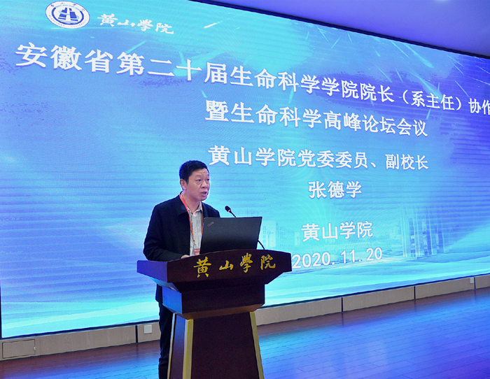 11月20日下午,安徽省高校第二十届生命科学学院院长(系主任)协作会暨生命科学高峰论坛在6776永利集团举行开幕式,来自全省20所高校的生命科学学院领导和教师以及我校yl6776永利集团的师生共300余人参加会议。中国科学院昆明动物研究所党委书记、副院长施鹏,中国科学院昆明动物研究所车静研究员等应邀出席会议,校党委书记汪枫,校党委委员、副校长张德学出席会议。