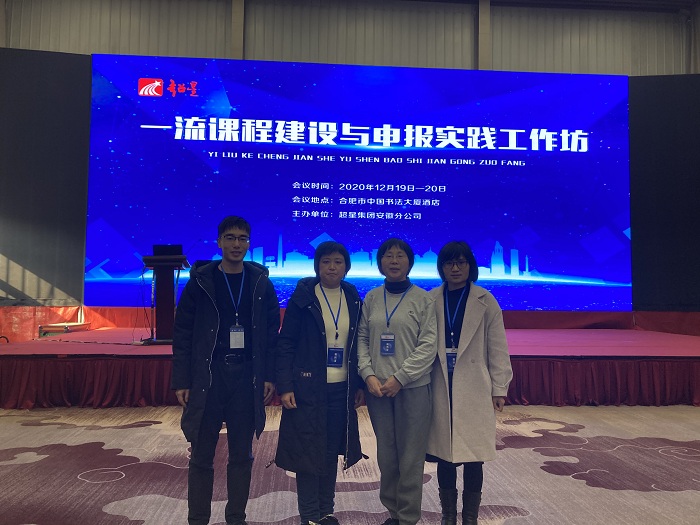 2020年12月18日-20日,一流课程建设与申报实践工作坊在安徽合肥召开。本次工作坊以“为更好地契合新时代人才培养需求,为教师课堂教学信息化改革探索提供理论指导、案例分享和技术支持,共享高校优质的教学资源,推广利用在线开放课程及其他教学工具开展混合式教学创新,实现有效提升教学质量的课堂革命”为主题,由超星集团主办。我院潘健、董丽丽、樊梅英、田原等4位教师参加了本次培训。