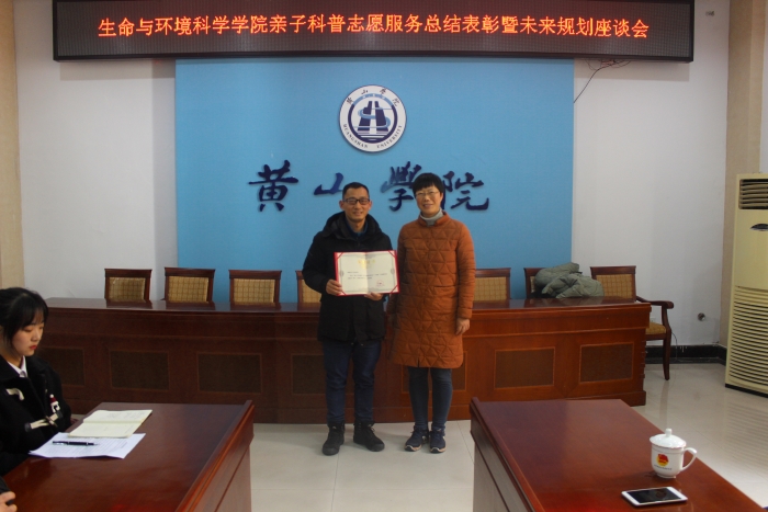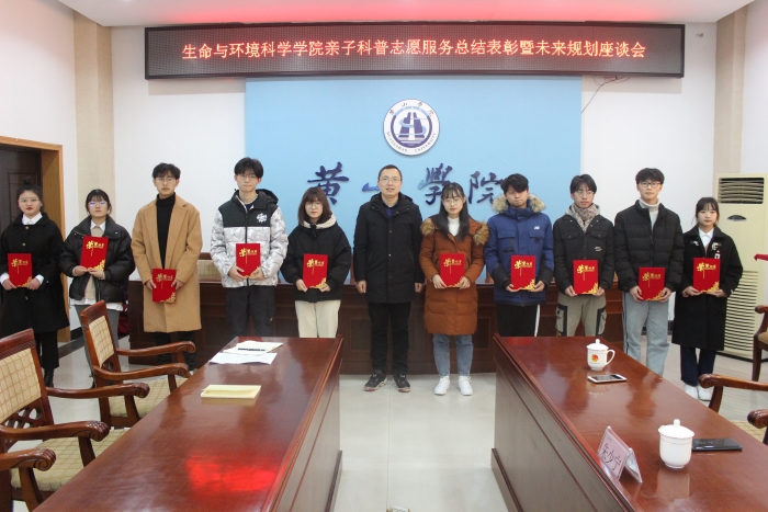 12月30日,生环学院在逸夫图书馆三楼会议室成功举办亲子志愿服务总结表彰暨未来规划座谈会,生环学院党委书记吕顺清、校团委书记邱慧、生环学院党委副书记万志兵、全国自然教育引导师汪世利、黄山地质公园博物馆副馆长缪鹏、绿马甲志愿者朱少宁及学生志愿者参加会议。