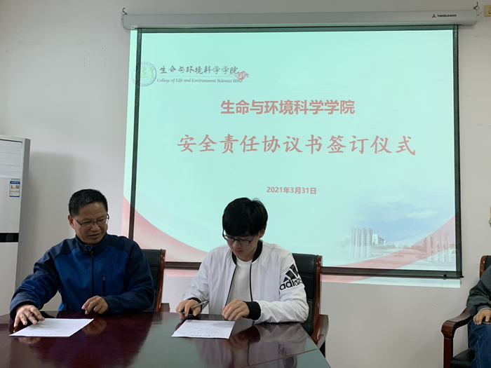 3月31日下午,生环学院在率水校区天都园林三楼会议室举行安全责任协议书签订仪式。学院领导与教研室主任、教师签订安全责任协议书。