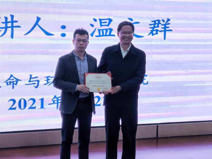 会上,该院党委书记吕顺清为温文群颁发yl6776永利集团“优秀校友”证书。