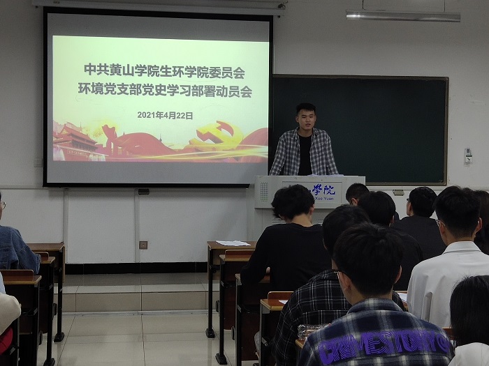 4月22日晚,环境党支部于文渊楼1107教室召开党史学习动员部署会暨支部党史集中学习会。会议由党支部书记王秋阳主持,支部全体党员、预备党员、入党积极分子参加了此次活动。