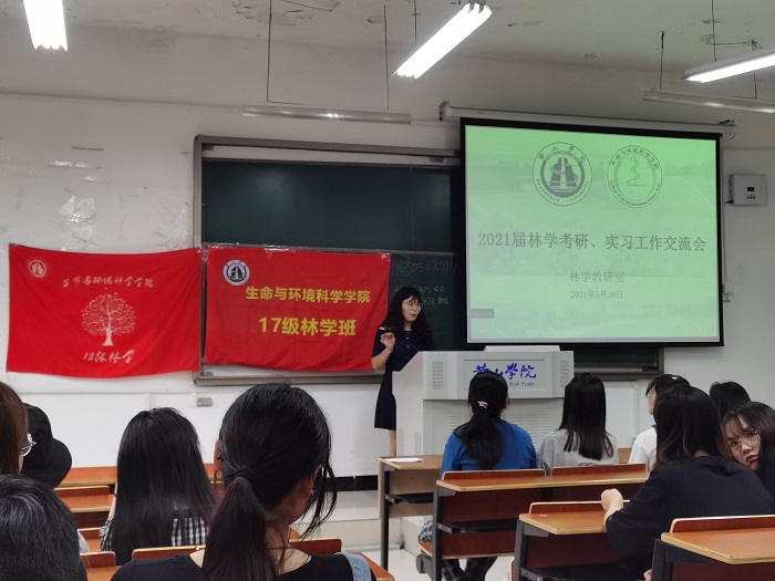 为帮助和引导林学专业同学进行考研准备,增强学生考研信心跟斗志,掌握考研技巧,5月26日下午,林学专业学生在文渊楼1201教室开展林学专业考研经验交流分享会,共有100多名同学参加。会议由林学专业教研室主任郑磊主持。