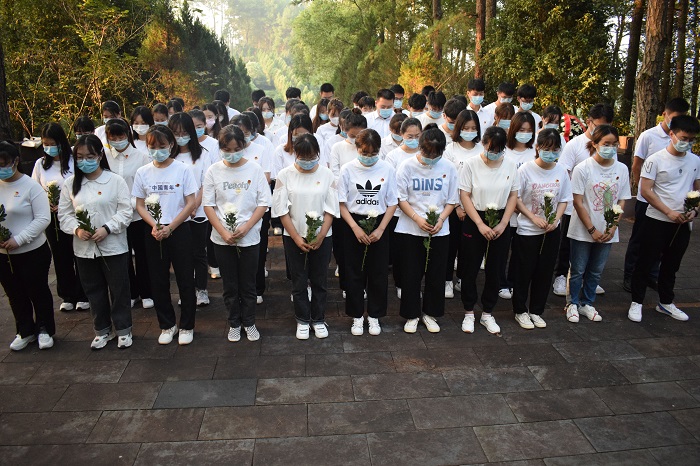 在烈士陵园英雄纪念碑前,全体党员、积极分子在英雄纪念碑前集体列队肃立,回忆918事件的起因、经过、影响,牢记国耻。全体成员三鞠躬、默哀并献上鲜花,向革命先烈寄托怀念、哀思。最后,在徐良玉的带领下,重温了入党誓词。