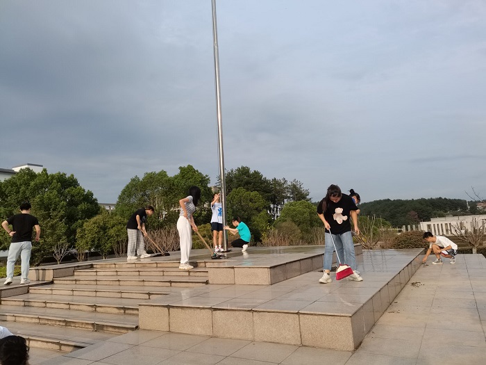 为迎接第72个国庆,净化校园环境,9月30日下午,食品环境党支部开展“‘洗’迎国庆,干净校园”学雷锋志愿清扫活动。党支部10名党员、20名积极分子报名参加志愿活动。
