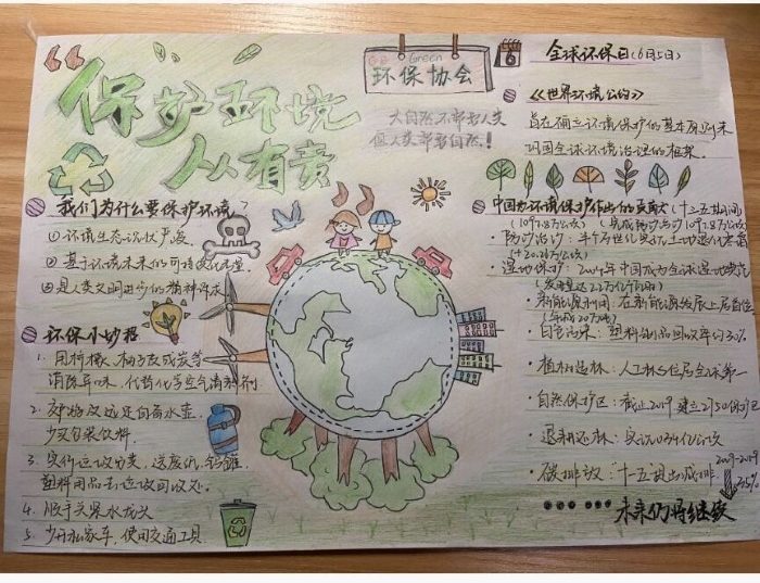 活动伊始,工作人员向同学们分发水彩笔和A4纸,参与活动的同学用彩绘和文字的形式将自己对环保的理解与想法以手抄报的形式描绘在纸上,最后,同学们将自己的作品拍摄记录,发送到指定邮箱,由活动负责人评选出优秀作品,向同学们展示。