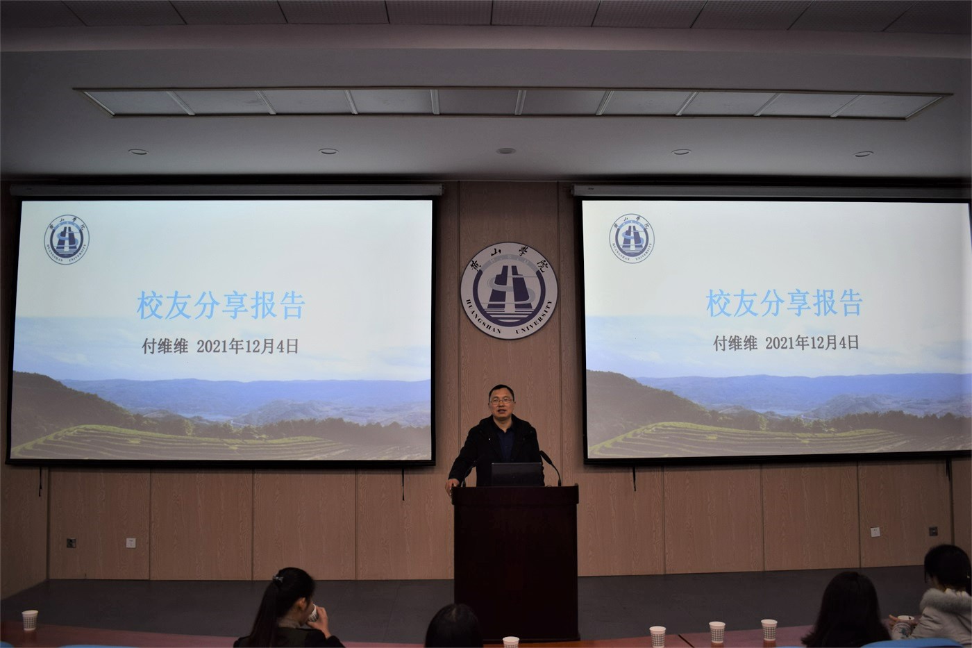 12月4日晚,生环学院于文端楼一楼报告厅举办“生命之光”校友讲坛之人生无限报告会,2012年毕业于生环学院食品科学与工程专业的付维维受邀作主讲,其目前担任黄山小罐茶部门经理。报告会由生环学院党委副书记万志兵主持,生环学院两百余名师生参加此次报告会。