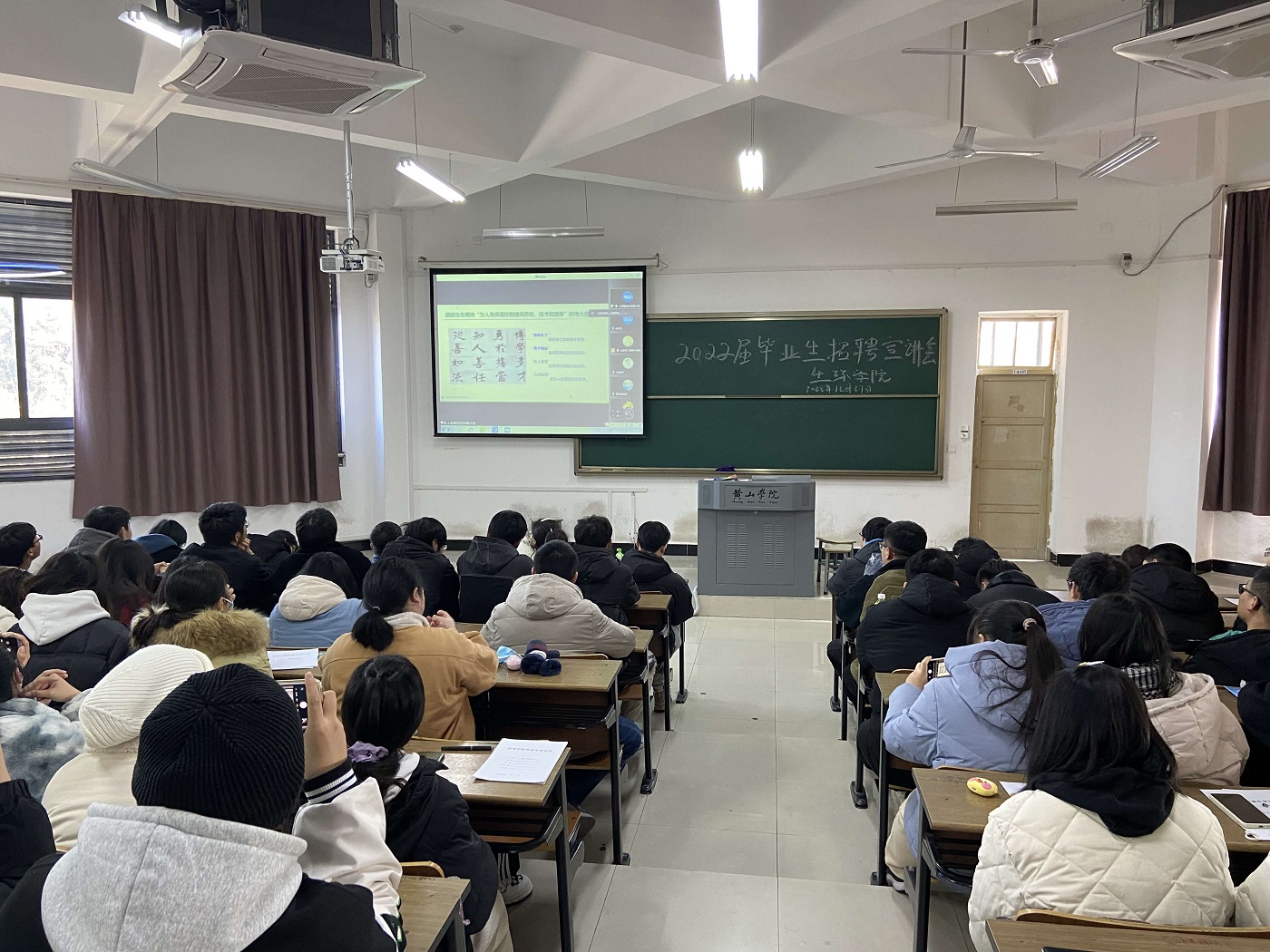 为搭建毕业生与用人单位间的交流平台,切实做好疫情防控常态化形势下我院高校毕业生就业工作,生环学院于2021年12月27日在文渊楼1103、1203、1206教室成功举办2022届毕业生线上双选会。我院万志兵副书记、陈向阳老师、辅导员徐和阳、徐良玉、刘璇、王宇以及全体2022届毕业生参加此次大会。