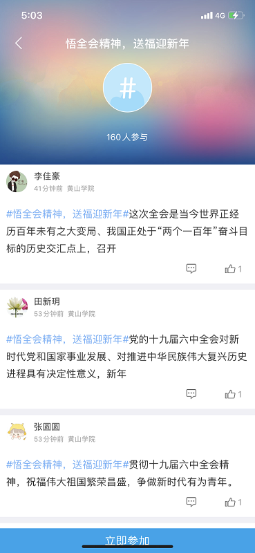 此次活动共吸引近300人参加,同学们在轻应用平台学习党的十九届六中全会精神,通过学习,大家对全会最重要的成果,“两个确立”对新时代党和国家事业发展、对推进中华民族伟大复兴历史进程的决定性意义,《决议》的重大意义以及党百年奋斗的宝贵历史经验等内容有了更进一步的认识、了解。