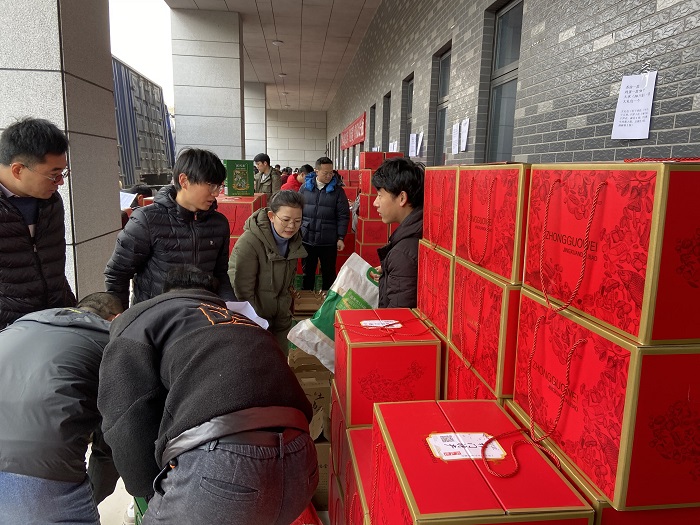 清晨,风雨操场各学院分工会委员、教职工相聚一起,新年氛围浓厚。大家相互协作开展慰问品的搬运、清点工作。现场,我院吴永祥、王北朝、李伟、马雪泷、梁金鹏、李燕、王秋阳、崔珺8位老师的身影不断在搬运大军中忙碌着。上午10点,学院老师陆续开始领取慰问品,签字、分发、搬运井然有序。