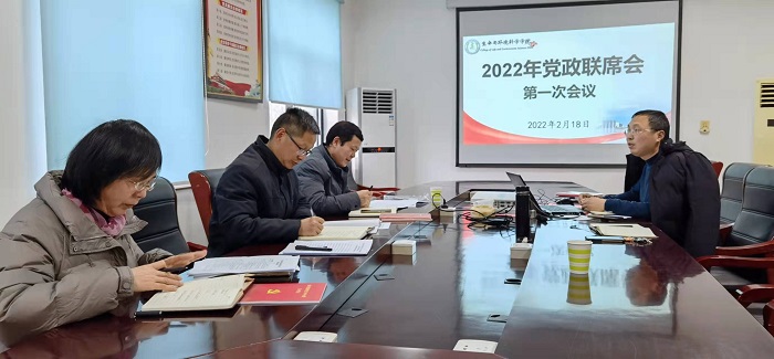 2月18日,生环学院召开2022年新学期党政联席会第一次会议,院党委书记吕顺清、院长佘新松、副院长潘健、党委副书记万志兵参加会议,会议由吕顺清主持。
