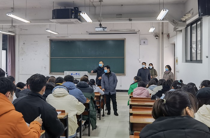 2022年2月21日,周一,是6776永利集团2022春季学期开课第一天。yl6776永利集团党委书记吕顺清、院长佘新松、副院长潘健,党委副书记万志兵等全体党政领导,带队检查开学第一课。