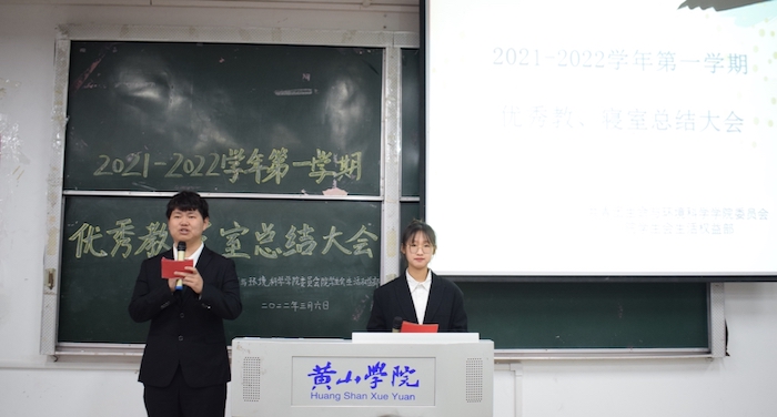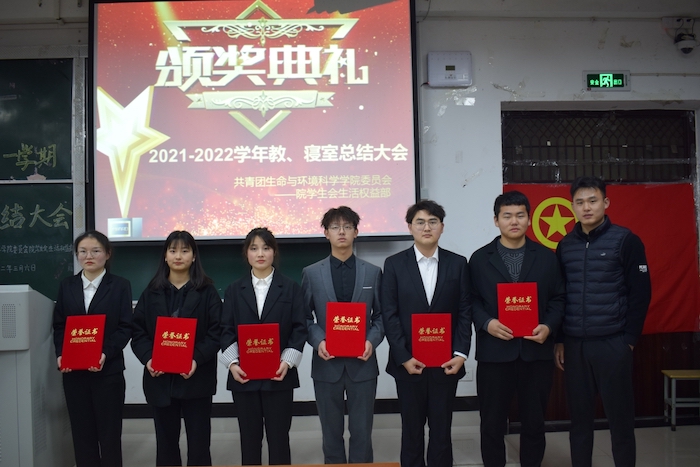 3月6号晚,生环学院生活权益部于文渊楼1105教室举办“2021—2022学年第一学期优秀教、寝室总结大会”,生环学院团委指导老师王秋阳、学生副书记徐龙、学生会主席团以及160名学生参加此次活动。