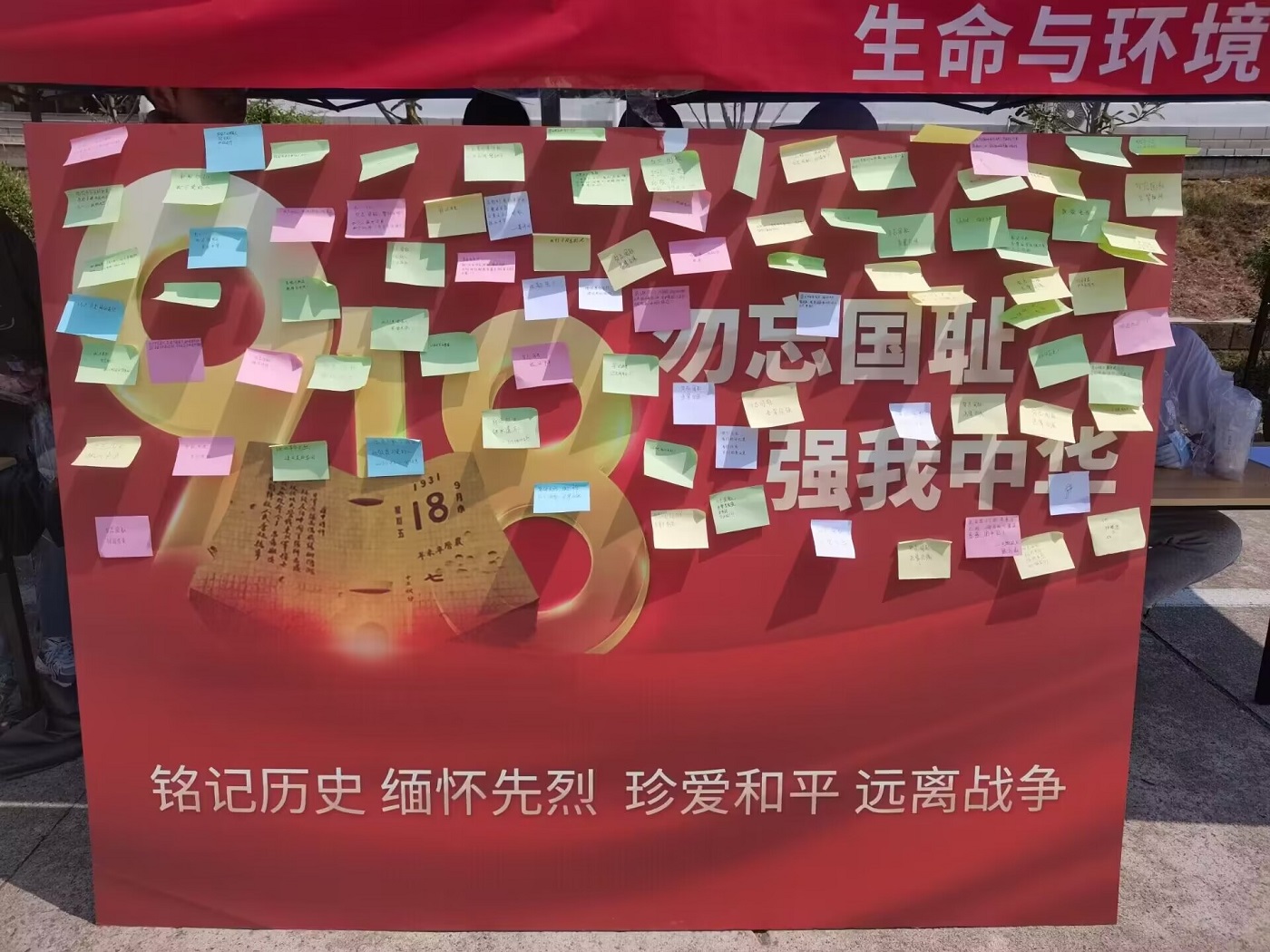 为引导青年学生了解历史、厚植爱国情怀,9月18日上午,生环学院易班工作站于一食堂一楼大门口开展“918,我对先烈有话说”主题宣传教育活动。本次活动共吸引近300名同学参加。
