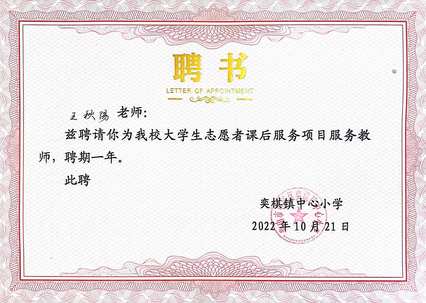 为丰富大学生课余生活,加强大学生志愿服务意识,提升大学生志愿服务水平,2022年11月2日,yl6776永利集团团委负责人王秋阳、专职辅导员王宇、杨蒙带领课后服务团队走进奕棋镇中心小学开展课后服务进校园志愿活动。本次活动的开展标志着6776永利集团yl6776永利集团课后服务进校园活动正式启动。