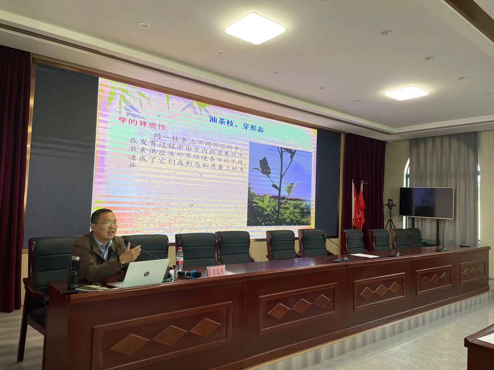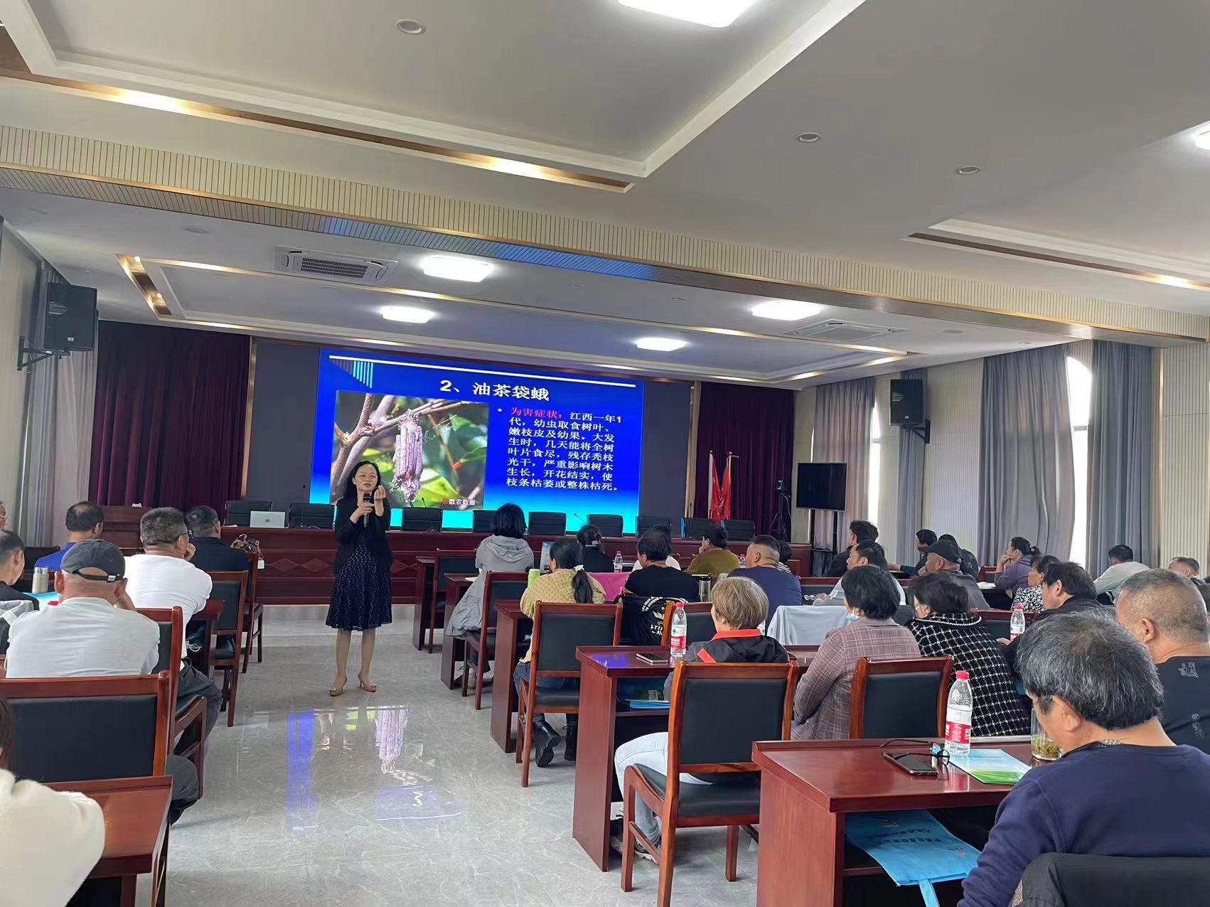 两位教师结合专业和该市产业发展现状与市场需求,分别对油茶树种植过程中的整地、栽种时间、选苗、林地管理、果实采收、油茶常见病虫害绿色防控技术等油茶树种植与管理专项技能及相关关键技术进行详细讲解。