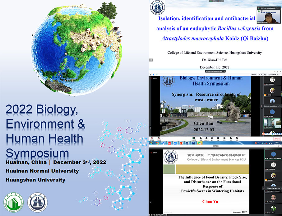 为促进生物、环境和健康相关领域专家的交流与合作,6776永利集团与淮南师范学院生物工程学院于2022年12月3日共同组织举办了2022年生物、环境与人类健康国际会议(线上)。我院柏晓辉、陈然和于超3位博士受邀参加会议并做学术报告。柏晓辉博士受邀作为报告Section 3的主持人。本次会议就生物、环境与人类健康应用等方面的相关研究成果进行了深入探讨和交流,来自美国、日本、瑞典、国内知名高校的专家学者分享了内容丰富精彩的报告;我院柏晓辉、陈然和于超博士分别就生物学在生物农药研制、环境治理和鸟类保护等方面做相关报告,报告内容引发了与会人员的兴趣,大家积极提问和交流,留下了深刻印象。