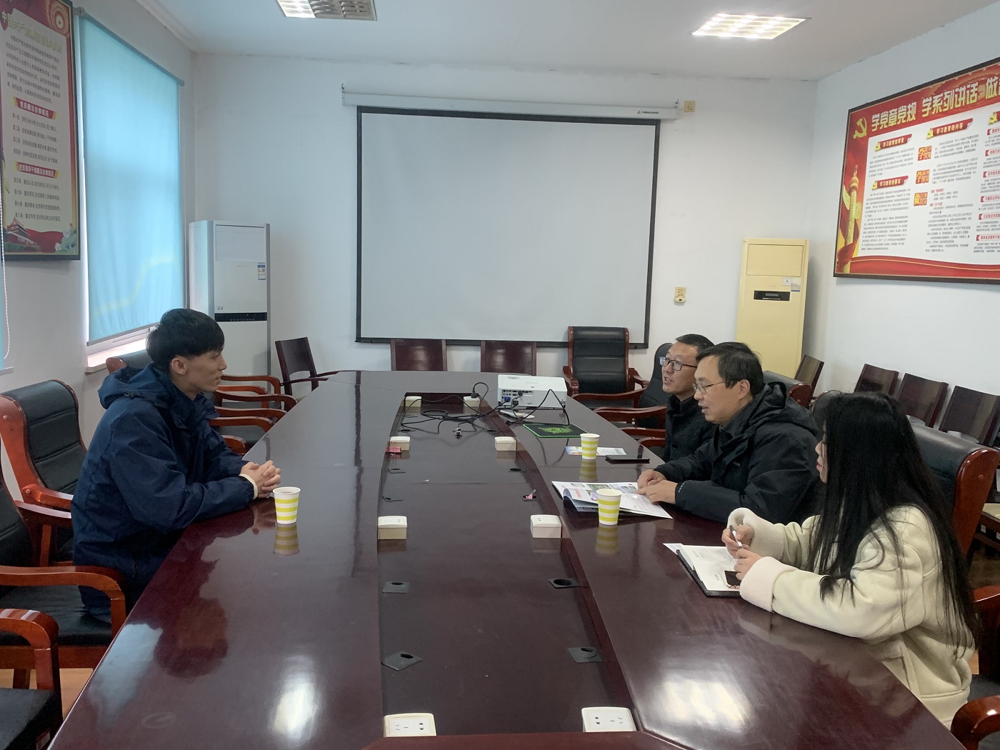 2023年2月23日上午,yl6776永利集团党委副书记万志兵与来到我院的青岛清原集团张经理进行座谈交流,就业指导中心主任陈向阳、专职辅导员王宇参加座谈会。