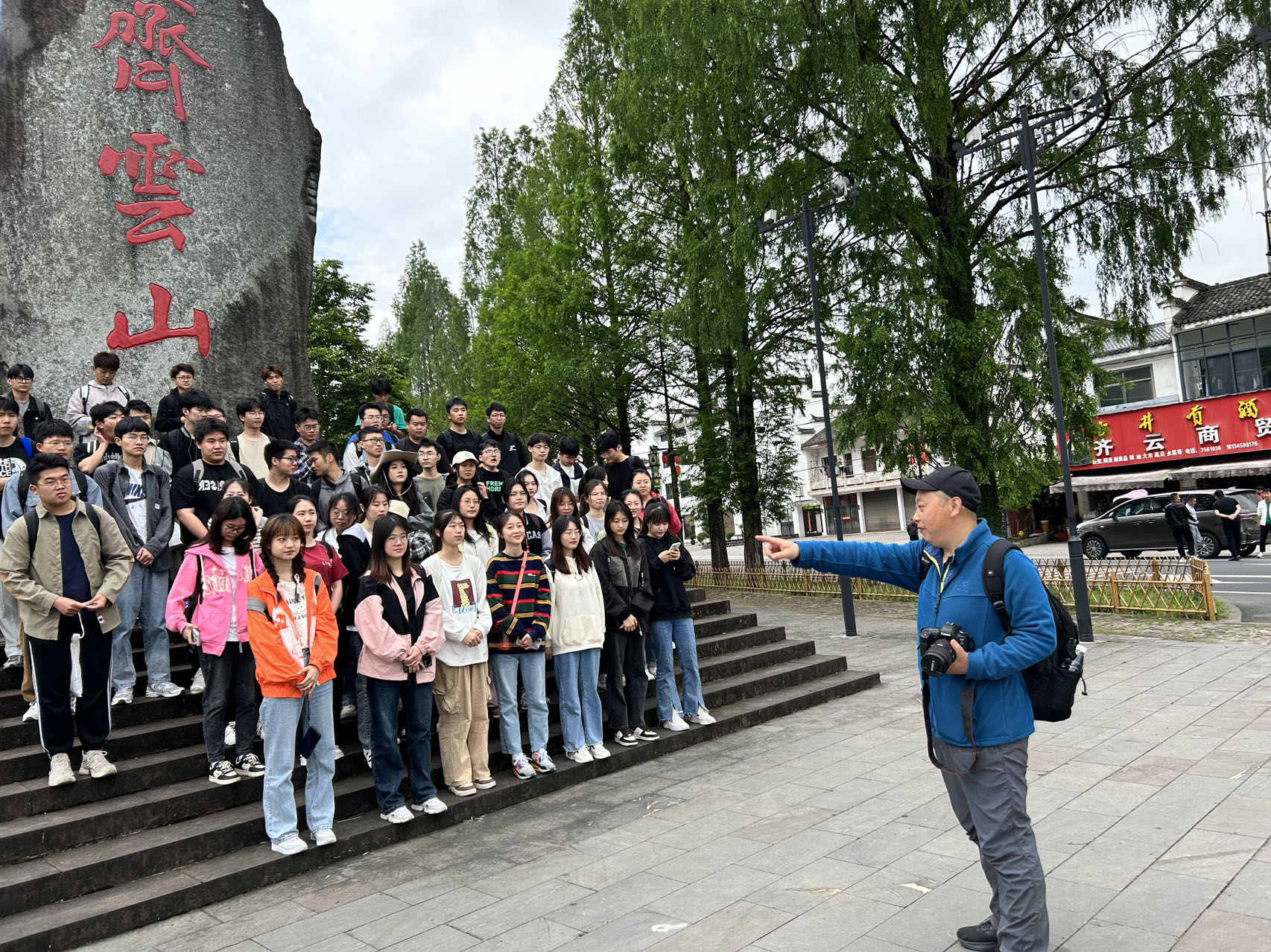 在程东华、罗毅和陈然老师的带领下,同学们开展了为期一天的齐云山地质地貌考察实习。程东华老师先向同学们介绍此次实习活动的路线和注意事项,随后进行分组和工作安排。上午九点大家开始徒步攀登齐云山,沿途程东华老师向同学们介绍丹霞地貌的特征、岩层形成机制和齐云山地区地壳运动过程,并组织同学对典型地貌处的土壤进行采样分析。