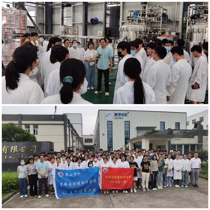 下午,同学们参观了位于黄山经济开发区的中新生物科技有限公司,该公司是一家专业从事生物反应器、发酵罐及相关工艺设备和自动化控制系统的研究、开发和制造,可为生物制药、生物技术、生物农业等行业提供全套核心工艺设备系统和完整的工艺解决方案,涵盖实验室阶段、中试阶段、产业化生产阶段等。公司负责人戴晓云博士从生物技术专业的四大核心工程的关系讲到现代生物技术的发展,并详细介绍了该公司的各种中试及工厂化生产设备,最后和同学们交流了生物医药行业的发展趋势。