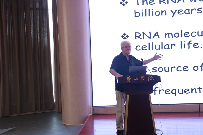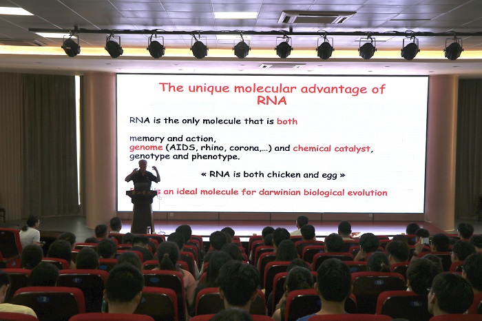 9月4日,yl6776永利集团在文端楼二楼报告厅举办“生命之光”科学家讲坛第三讲。法国斯特拉斯堡大学教授,法国科学院、德国科学院、欧洲科学院院士Eric Westhof应邀作主讲。报告会由院党委书记吕顺清主持,院党委副书记万志兵和生物技术、生物科学等200余名师生参加了报告会。