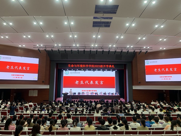 22林学专升本路凯旋同学结合自身经验向新生分享了专业学习和实践生活的心得体会。他希望学弟学妹们以饱满的精神状态和无畏的人生态度迎接大学新生活。23级生物技术二班徐君豪同学作为新生代表发言,他表示将在师长们的教导下,珍惜每一寸光阴,发奋努力、扎实学习,迎接美好未来。