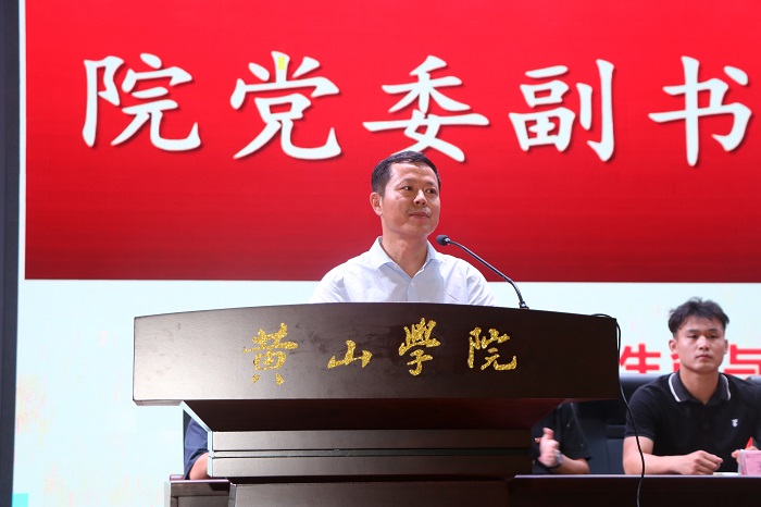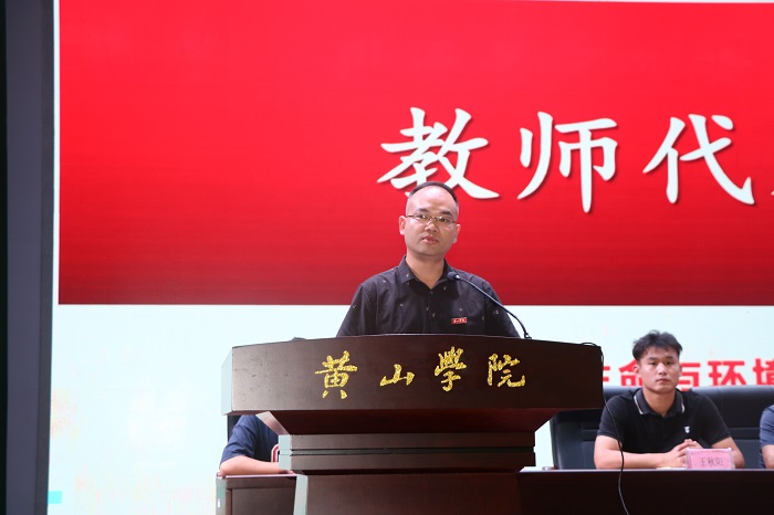 随后,陈然博士作为教师代表发言,他回顾了该院的历史和近年来取得的一系列发展成就。他希望新同学们能够努力涵养三种气质:志气、骨气和勇气,在大学未来四年,放飞梦想、学有所成。