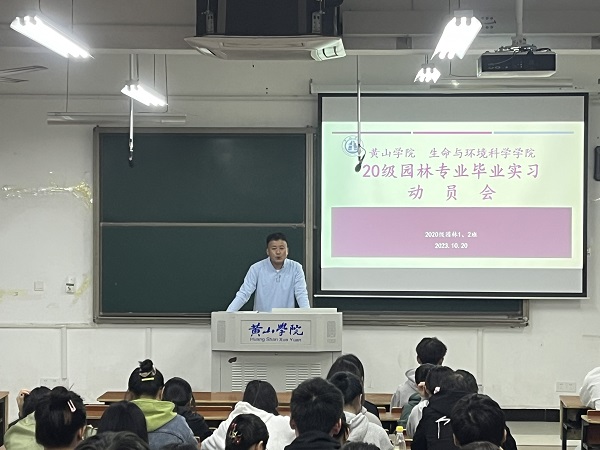 2023年10月20日晚7点,园林专业在文渊楼1103教室召开2024届园林专业毕业实习动员大会。园林专业教研室主任马涛、副主任崔珺、辅导员刘璇、教研室其他教师和2020级园林专业全体学生参加此次会议。
