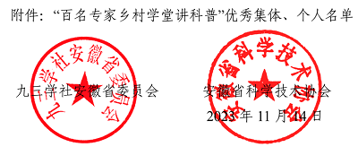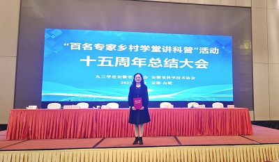 11月23日,九三学社安徽省委员会、安徽省科学技术协会共同举办的“百名专家乡村学堂讲科普”活动十五周年总结大会在合肥召开。我院教师苏胜荣受邀参加。