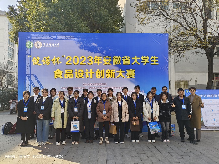 12月8日至9日,由安徽省教育厅主办,阜阳师范大学、安徽省大学生食品设计创新大赛组委会承办的“健诺杯”2023年安徽省大学生食品设计创新大赛决赛在阜阳师范大学成功举行。经过激烈角逐,我校学子荣获一等奖1项、二等奖2项,三等奖2项。