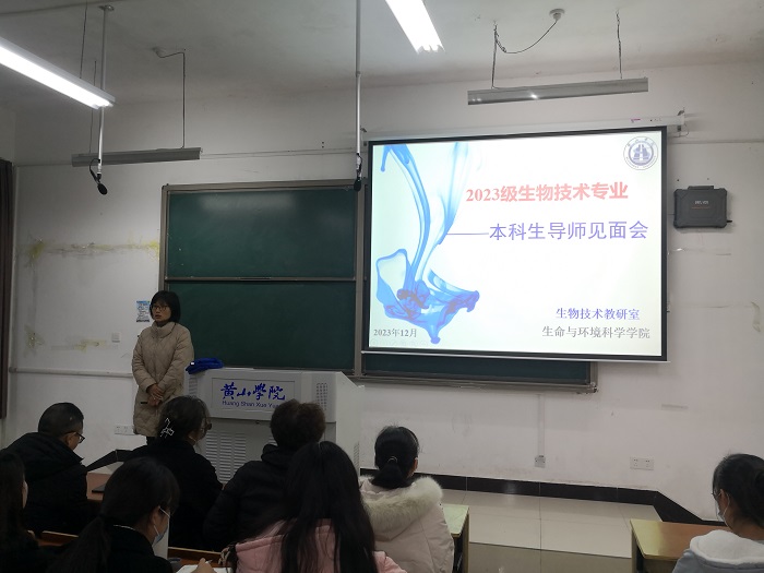12月13日下午,生物技术专业在文渊楼1103教室召开了2023级本科生导师见面会。生物技术教研室全体教师、2023级生物技术班全体学生参加了见面会,会议由教研室主任董丽丽老师主持。