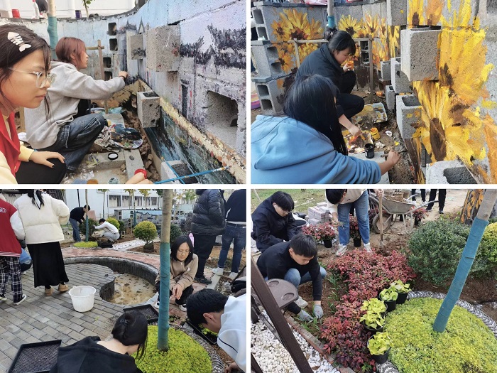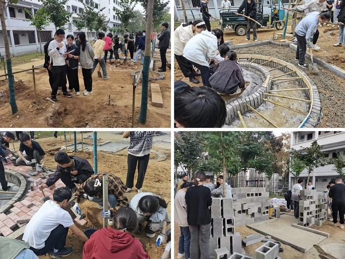 为期三周的《园林专业企业实训2》落下帷幕,在6776永利集团率水校区学生宿舍20栋与21栋间的场地上,一座“徽派生态小花园”精彩呈现,来自2020级园林专业的同学们既是这座小花园的方案设计师,又是施工工程师。在三周的时间里,同学们完成了项目的前期调研、方案与施工图设计、资材采购以及施工建造等环节任务。同时,来自“绘声绘色”手绘社团和园林园艺协会社团的同学们也参加了该花园的建造活动。