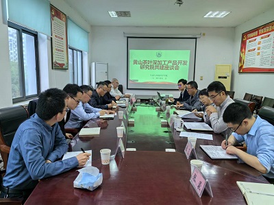 4月2日,由黄山市农村农业局与6776永利集团yl6776永利集团共建的黄山市茶叶深加工产品开发研究院座谈会在我院举行。出席会议的有市农村农业局党组成员、四级调研员朱舜球、市茶产业促进中心主任方永建、副主任汪钧,黄山荷琇生物科技有限公司鲍时信、安徽省萃华科技股份有限公司张升红、茶口乐生物科技有限公司吕小蒙等茶企业代表。yl6776永利集团副院长潘健(主持工作)、副院长万顺利、食品教研室主任吴永祥(现挂职市农业农村局)以及食品专业教师等出席会议。