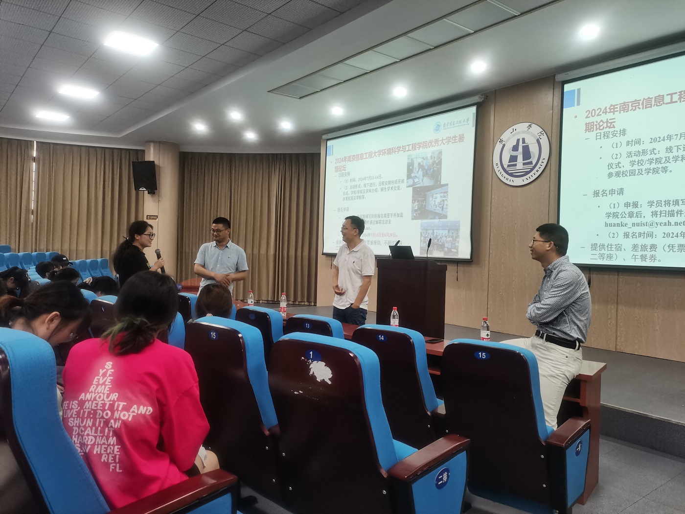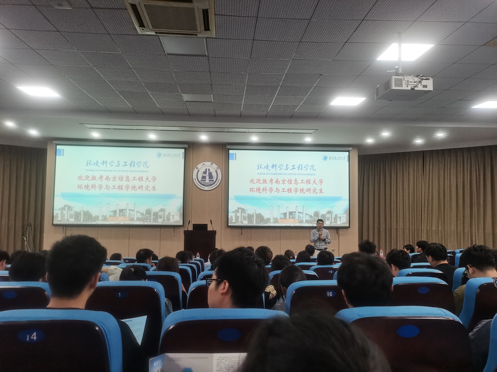 6月19日,南京信息工程大学环境科学与工程学院副院长胡建林一行在二教楼一楼报告厅开展硕士研究生招生宣传,会议由我校yl6776永利集团党委副书记万志兵主持,2021级环境科学专业及化学化工学院部分专业约100余名学生参加。