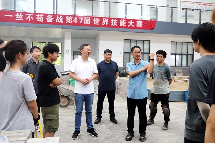 院领导们与正在积极备战的选手、专家教练亲切交谈,仔细询问他们的备战情况,高度赞扬他们吃苦耐劳的意志品质,激励他们以最佳状态迎接即将到来的第48届世界技能大赛园艺项目安徽省选拔赛,力争取得好成绩,为国为校争光,院领导强调暑期酷热,注意身心健康,尤其是注意安全。
