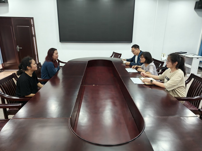 9月3日下午,在横江校区国际教育学院三楼会议室召开生物技术专业首批留学生见面交流会。国际教育学院留学生管理科夏欣欣、生物技术专业教研室主任董丽丽、专职教师崔谱、王亚平、汪剑与2名泰国籍留学生KAMAH NOOLFARIA(林沁瑶)、PETNOK NATTHAPORN(金平)参加会议。